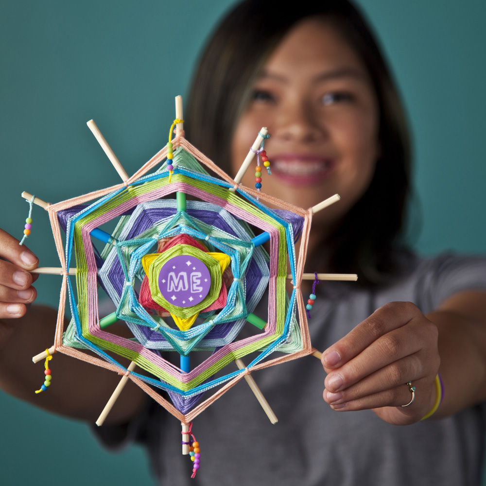 Put your true colors on display! Start by answering the fun questions in the quiz book. Each response has a color – just weave that thread around the wooden frame. You’ll soon have a bright woven artwork that is all about you! Ages 8+