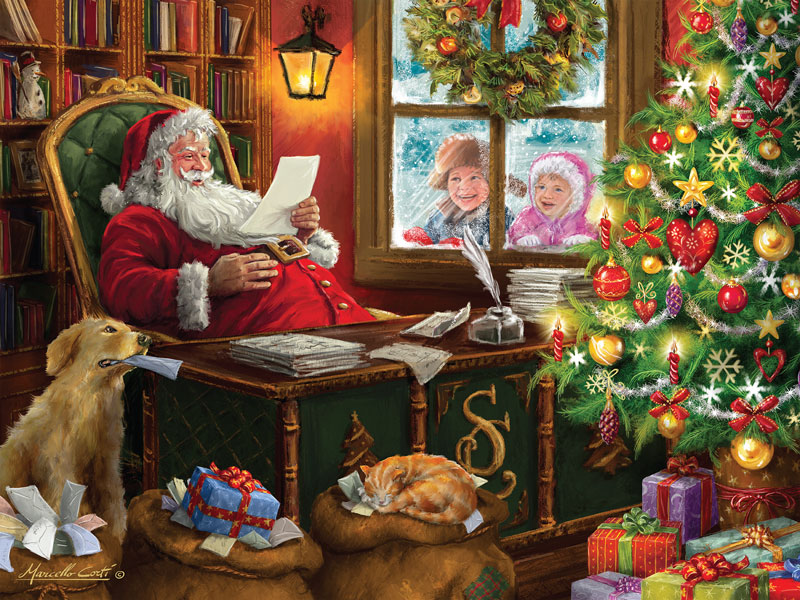 Children anxiously await while Santa reads their letter. A delightfully fun puzzle for all ages. Start a family puzzle tradition this holiday season!