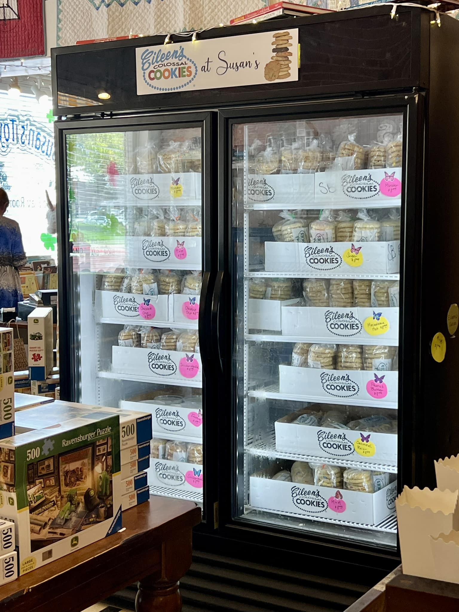 Eileen’s Chocolate Chip Cookies! When you pick up your cookies you can choose the gift box of your choice! We have gift boxes made up for all occasions and holidays for you to add your cookies to! We love having these in our store for your!