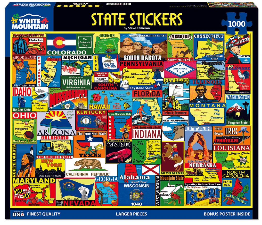 State Stickers (1000 Pieces) White Mountain Puzzles – Made in USA