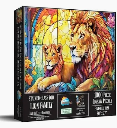 Stained Glass Zoo – Tigers (1,000 Pieces) SunsOut Puzzles – Made in USA